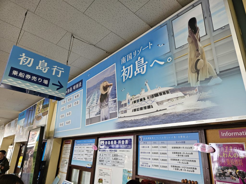10分程度の乗車で到着しました。乗船券乗り場で大人1名往復2,800円支払い、乗船します。