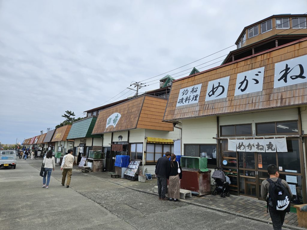 初島の港には地元の漁師などが営む海鮮料理屋が立ち並ぶエリアがあり、食堂街と呼ばれています。10店舗ほど立ち並んでいますが、いずれもランチのみの営業で夜は営業していないようです。