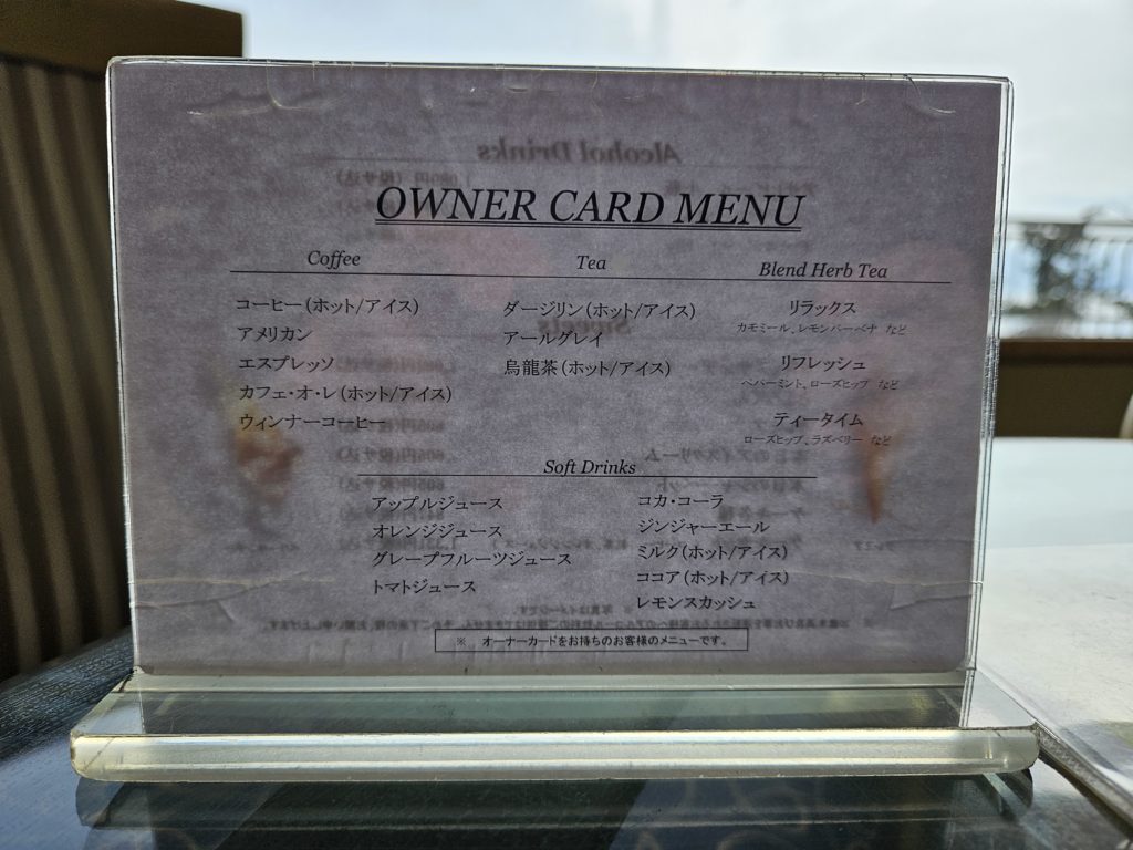 しばらく部屋でゆっくりした後は、ラウンジでオーナーズカードを使って無料でドリンクをいただきました。