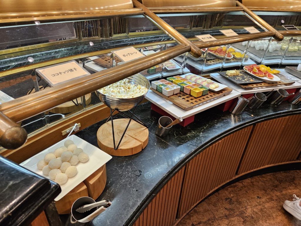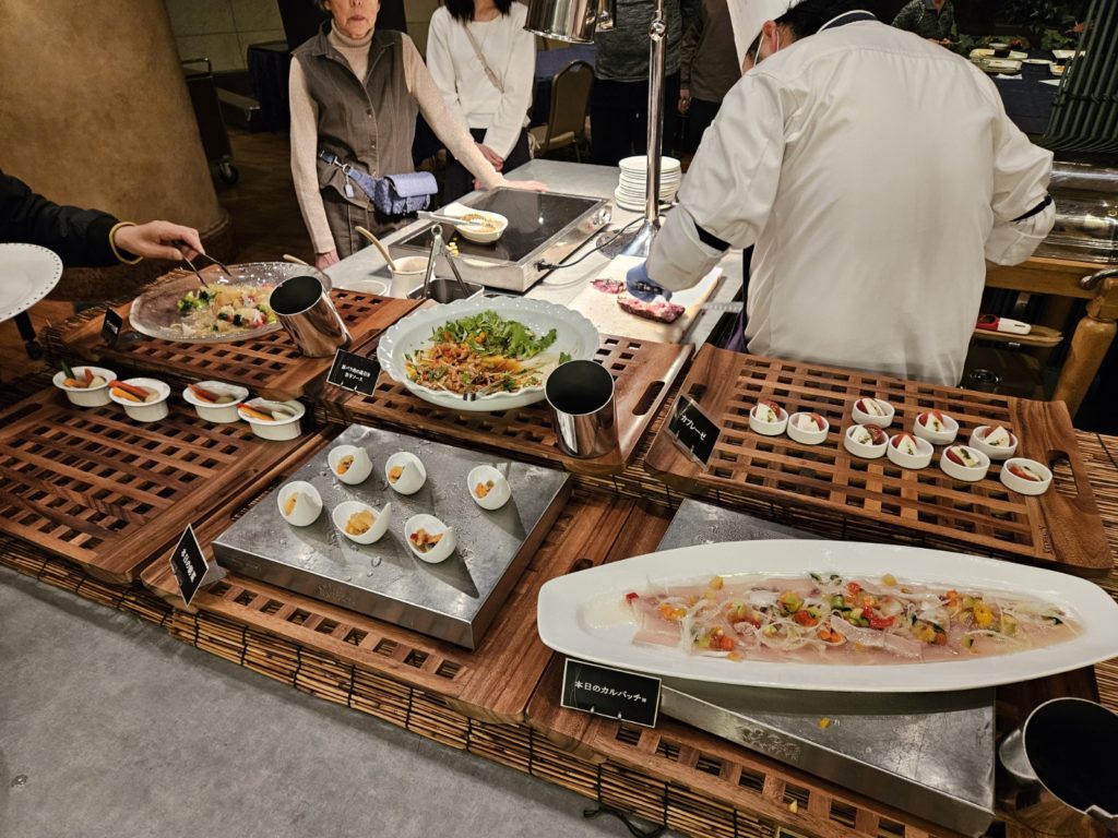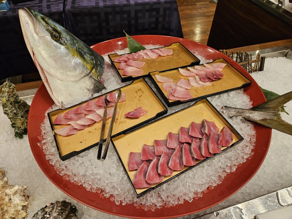 種類としてはものすごく豊富というわけではありませんでしたが、初島らしく刺身など海鮮が充実していたほか、ローストビーフ、中華料理、デザート、サラダなど一通り揃っていた印象です。特に中華料理が美味しく、焼売は絶品でした。