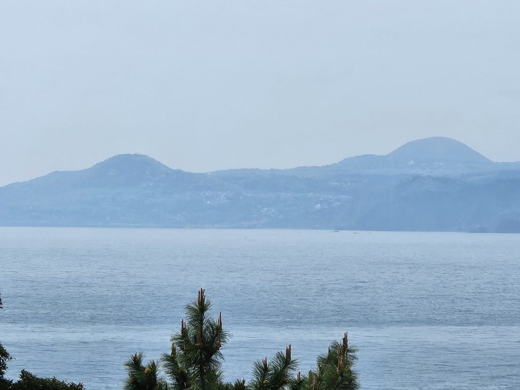 朝は昨日と比べるとよく晴れていて、熱海や網代方面がよく見えました。朝食前に朝風呂・朝サウナを満喫しました。