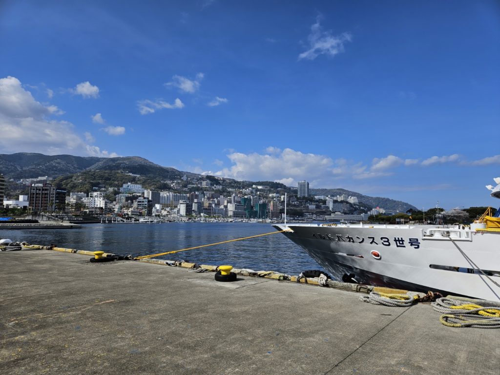 熱海駅の6番バス乗り場から網代旭町行に乗り熱海港バス停で降ります。(7番のりばからのバスも利用可能)Suicaも利用可能で助かりました。