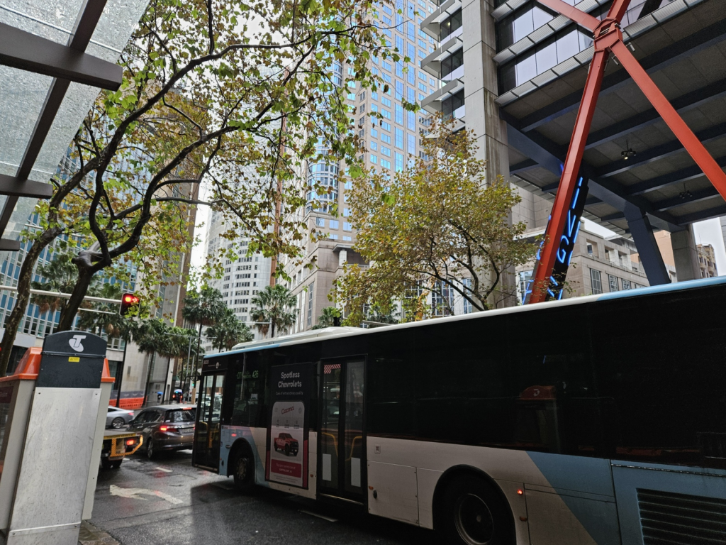 ホテルの目の前にあるUTSという大学の前にバス停があり、中心部へバスが出ています。ライトレールや電車も同様ですが、基本的に支払いはクレジットカードのタッチ決済が主流となっており、Suicaに相当するような交通系カードを購入する必要はありません。