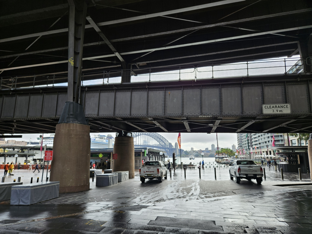 まず、シドニー観光の目玉である「シドニーオペラハウス」を見に行きます。サーキュラーキー駅を抜けるとシドニーハーバーブリッジが見えてきます。