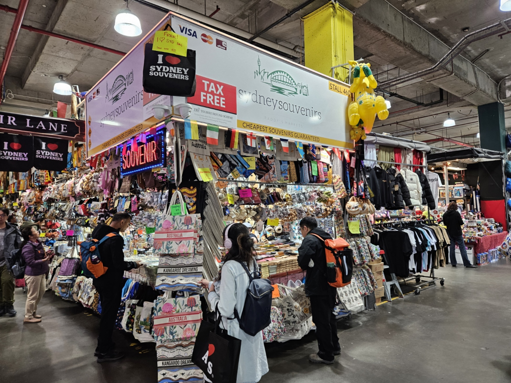 Chinatown(チャイナタウン)にある「パディーズマーケット」(Paddy’s Market)に来ました。レンガ造りの歴史的な建物が特徴的なこのマーケットは、シドニーで最も賑やかな市場の一つであり、多くの観光客や地元の人々に親しまれています。マーケット内は、日用品からお土産、衣類、アクセサリーまでさまざまな商品が手に入ります。
