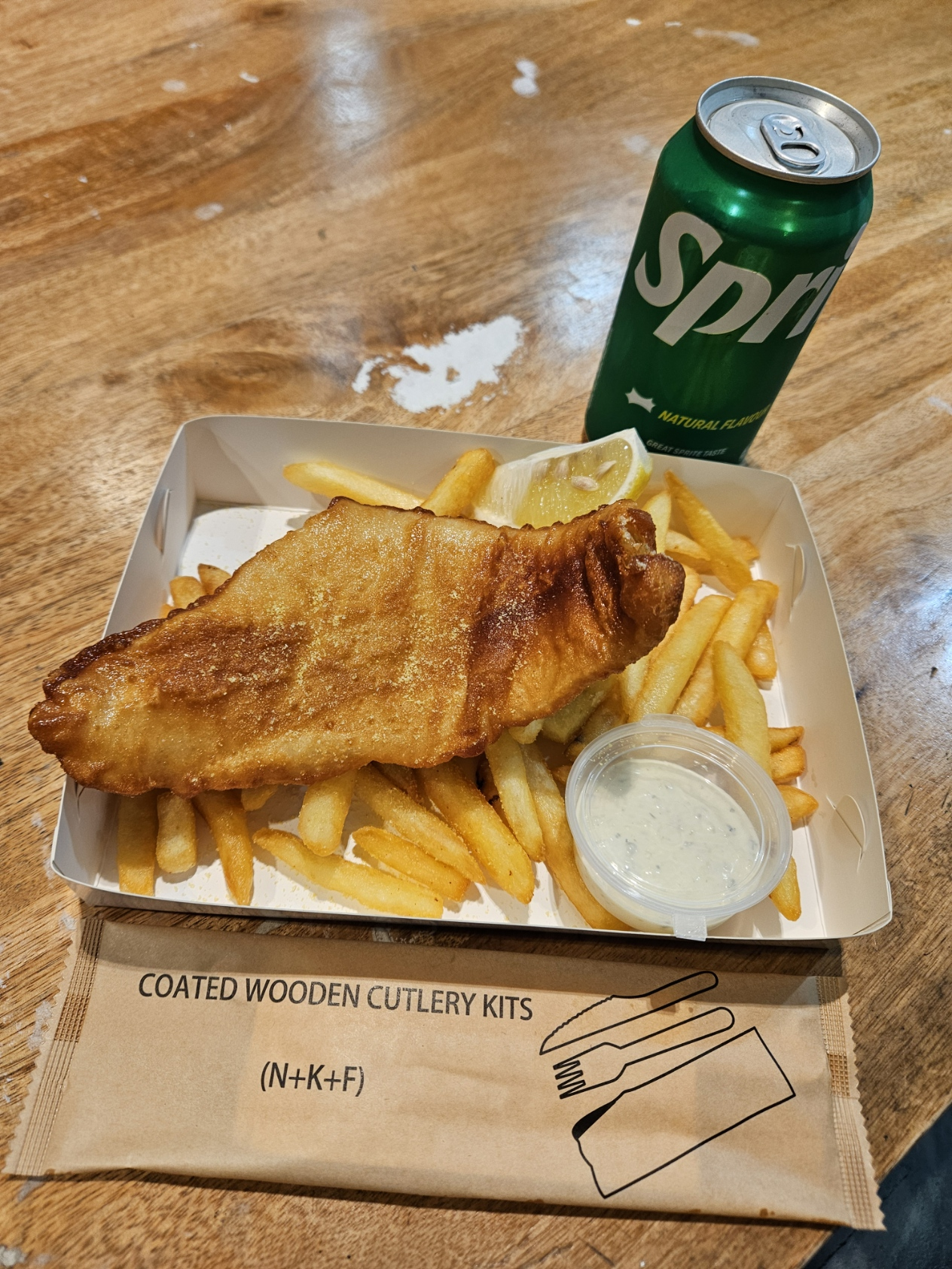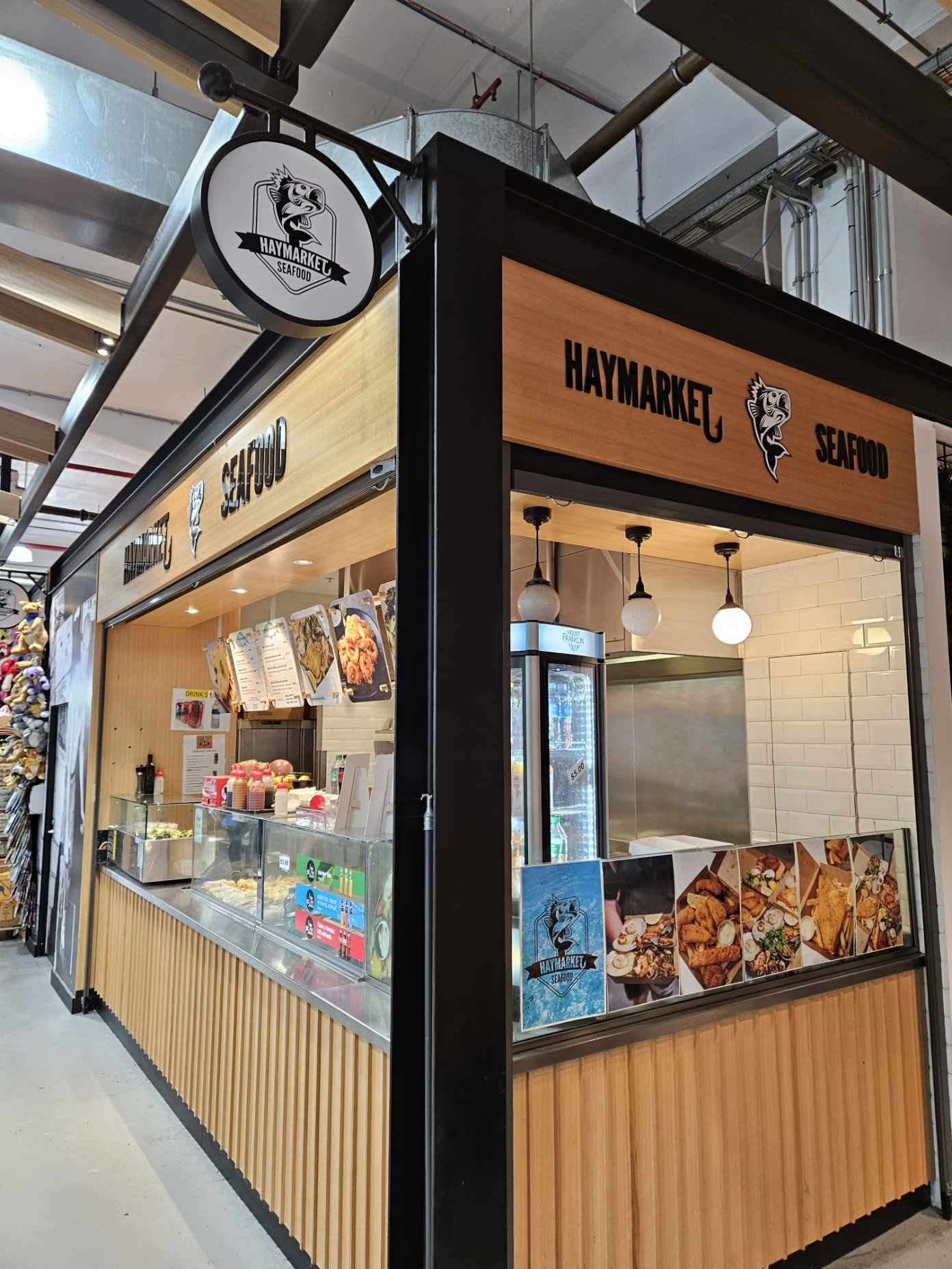 お昼は、マーケット内にあるHaymarket Seafoodのフィッシュ&チップスを注文。揚げたてで美味しくいただきました。