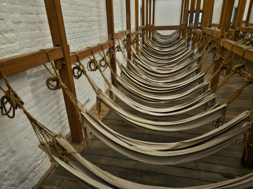 続いて訪れたのは、「ハイド・パーク・バラックス」(Hyde Park Barracks)です。この建物は、かつて刑務所として使用されていた場所で、現在は博物館として公開されています。世界遺産に指定されています。オーストラリアの初期の植民地時代の歴史や、囚人たちの生活について学ぶことができます。展示では、当時の生活用品や資料が紹介されています。日本語を含むオーディオガイドが提供されており、無料で入場できます。